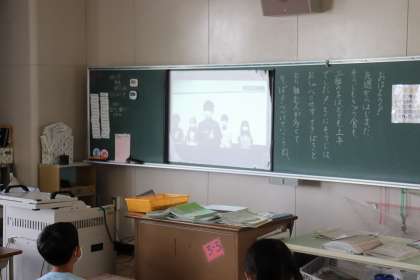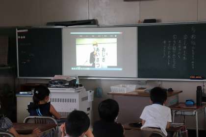 今日の朝礼は、コロナウイルス対策として、パソコン室から児童会役員の任命の様子と校長先生の話をZoomを使用して各教室に配信しました。児童は、教室のスクリーンに映し出された映像と、スピーカーからの音声を静かに聞いていました。