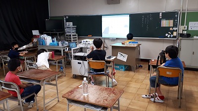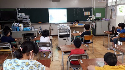 屋内運動場で集会ができないため、はじめて各教室でパソコンを使った放送朝礼がありました。映像と音声で校長先生や児童会役員の話を分かりやすく聞くことができました。たんぽぽの子どもたちは興味深くきちんと聞いていました。