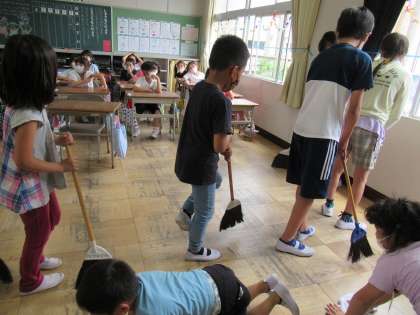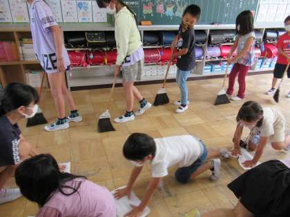 掃除の時間には、6年生のお兄さん・お姉さんがお手伝いに来てくれています。6年生のお手本を見ながら、ほうきとぞうきんの使い方を勉強しました。時間いっぱいまで静かに取り組むことができました。