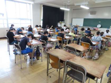 国語の「白いぼうし」のテストを実施しました。えんぴつや消しゴムの準備、テストを受ける姿勢など決まりを守って落ち着いて取り組むことができました。