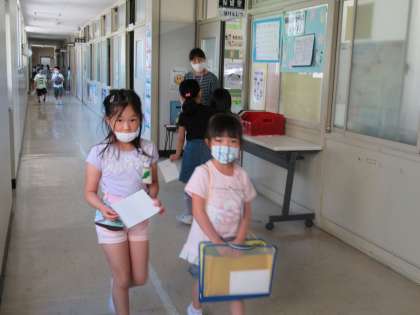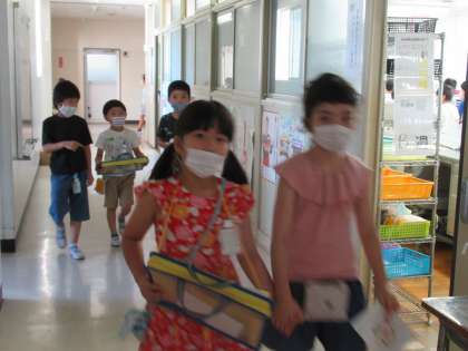 今日は2年生のお兄さんとお姉さんが学校探検に連れて行ってくれました。学校探検の後は一緒に外で遊んでもらいました。とっても楽しい1日になりました。