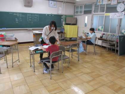 たんぽぽ学級では、2時間目、1組、2組、3組に分かれて勉強をしていました。それぞれのめあてをもち、落ち着いて取り組んでいました。