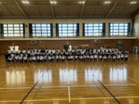 体育の授業では、バスケットボールを学習しています。今日は、相手がいる時のパスの練習をしました。オフェンス、ディフェンスに分かれて、オフェンスはどうしたら味方にパスができるか、ディフェンスはどうしたらパスカットができるかなどを考えながら取り組みました。最後は、パスで気を付けることを意識しながら、2対1を行いました。