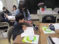 算数では、「わくわく算数広場」に取り組みました。手順を考えて、五輪のマークを色紙を切って作ることができました。