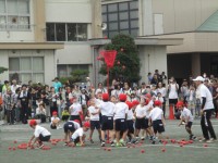 図工では、おひさまをクレヨンを使って描きました。体育では50mを走りました。初めて3クラスそろっての合同体育でしたが、上手に整列や体操をすることができました。