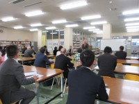 北部中学校の図書館で,北部中学校区4校の委員が集まり,各校の1学期の取り組みの...
