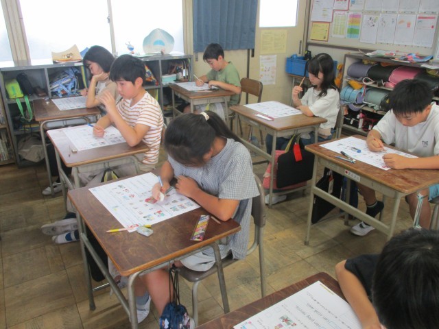 外国語の聞き取りテストの様子です。4月から何度も取り組んできた聞き取りにも、だいぶ慣れてきました。NとMやSとLの聞き分けに苦戦しているようでしたが、粘り強く取り組んでいました。