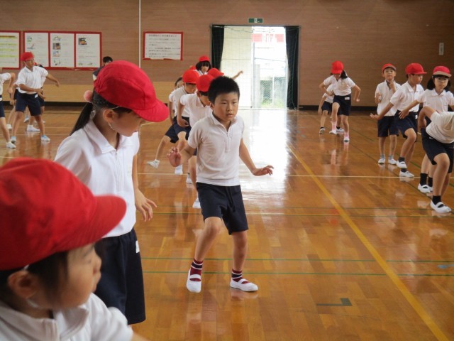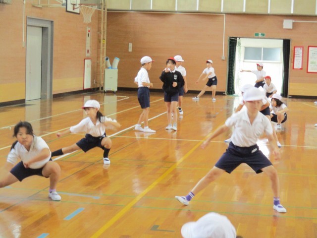 4年生がソーラン節を教えてくれています。