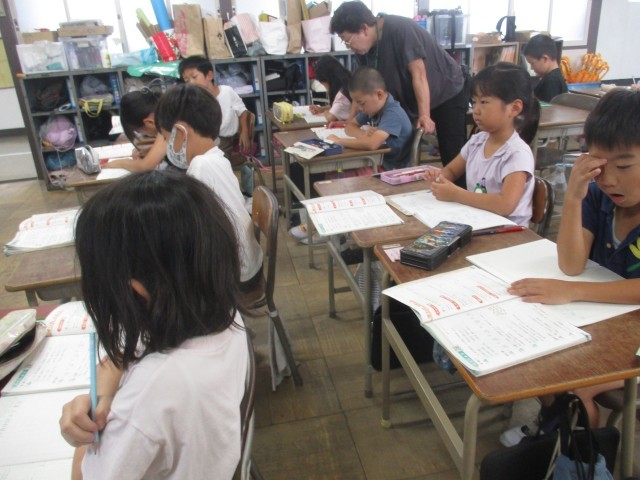 算数の学習では、「まとめの問題」の時間でした。1問ずつ、ていねいに問題を読み、取り組む姿が印象的でした。「上」の教科書も、いよいよ終わりですね。