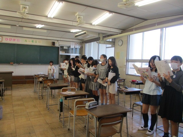 音楽の授業で旋律の重なりを意識して歌いました。