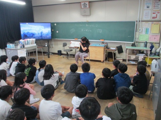 朝読書の時間に担任の先生を入れ替えて、読み聞かせを行いました。いつもとは違う雰囲気で、興味津々な表情で話を聞いていました。
