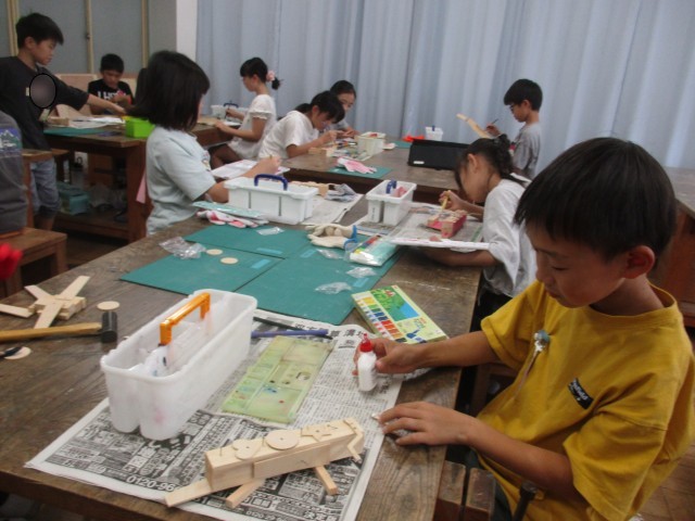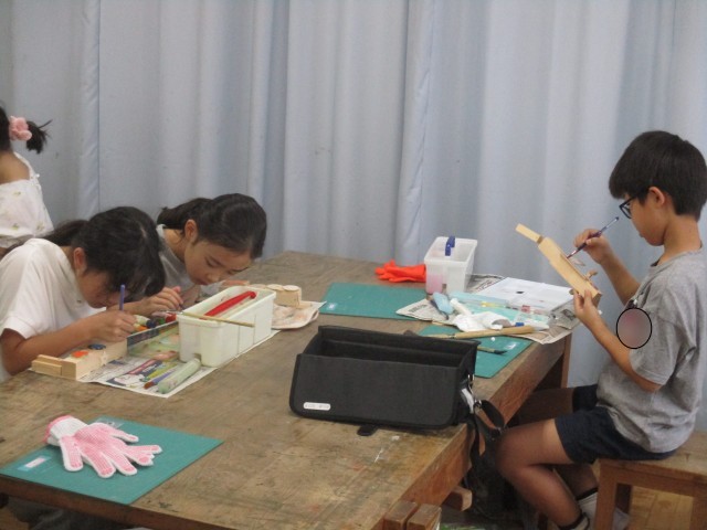自分の創造をふくらませた、アイデア満載のかたちになってきました。絵の具で色をつけて、完成をめざします。