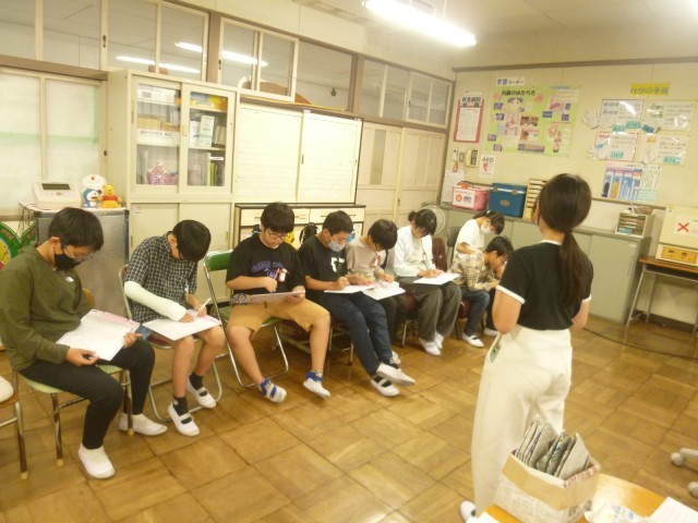 運動会の救護係では、けがをした児童の記録を担当します。今日は、けが人役も演じてもらい、記録を書く練習をしました。「お名前は何ですか?」「どうしてけがをしたんですか?」と優しく声をかけることができていました。