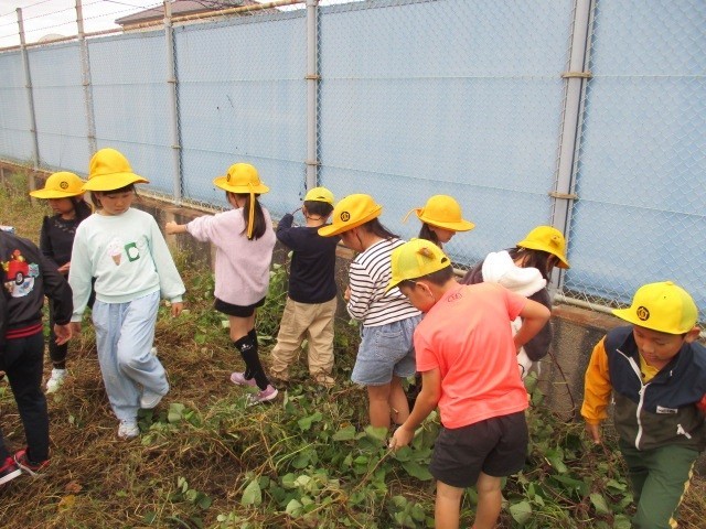 きれいなリースが完成すると嬉しいですね。中にはサツマイモ付きのつるも見つかり、みんな楽しそうに活動していました。