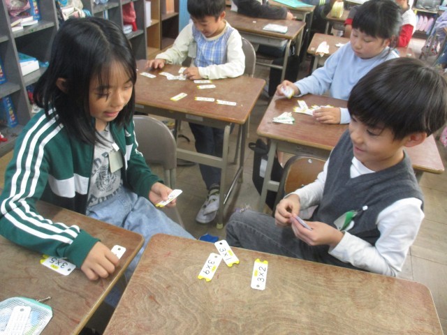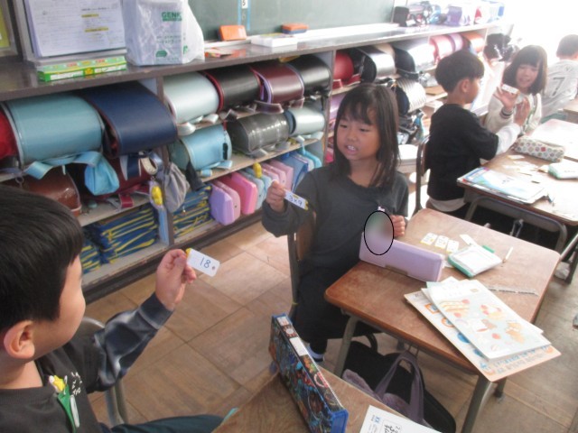 算数の学習では、九九の学習が続いています。九九カードをつかって、さまざまな方法で九九が身につくように楽しく練習しました。