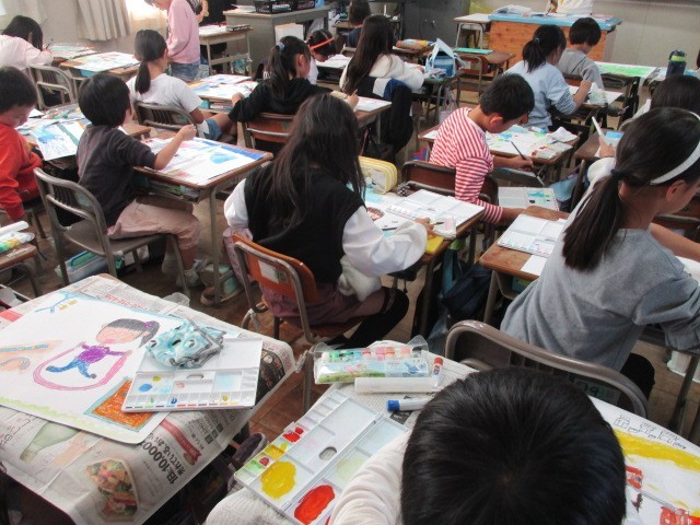 図工の時間に、水彩絵の具で色付けをしました。
