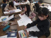 図工の学習では、読書感想画に取り組んでいます。聞いたお話を想像して、自分の気に入った様子を絵に表現していきます。