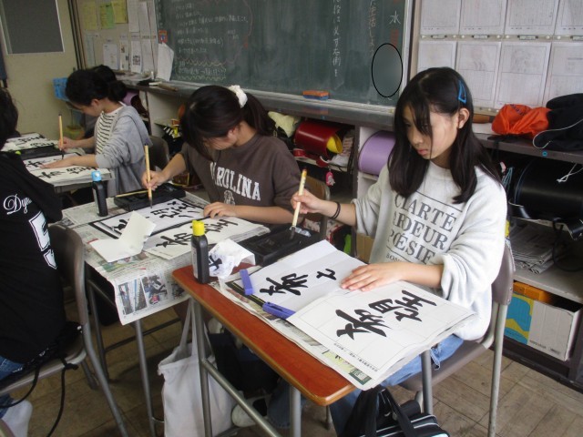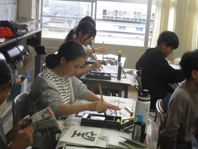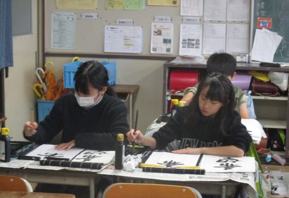 書写の学習では、ひと筆ずつていねいに、こころ落ち着けて書いています。