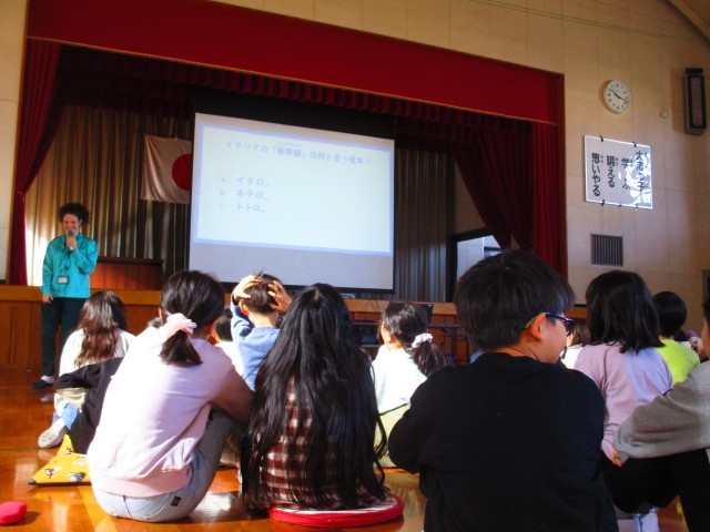 国際交流員の方をお招きし、イタリアについて楽しく学んでいます。
