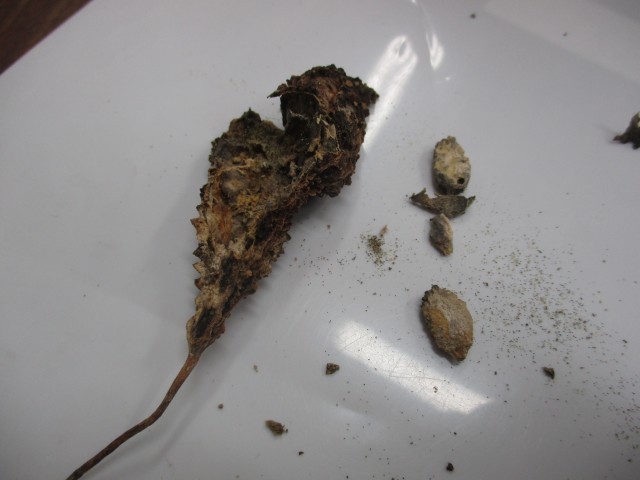 秋の生き物を観察するために、学校敷地内を散策しました。サクラの木の様子も秋を感じました。春に植えたツルレイシも枯れた実がくっついていました。