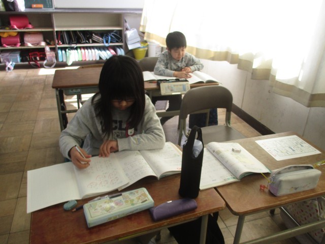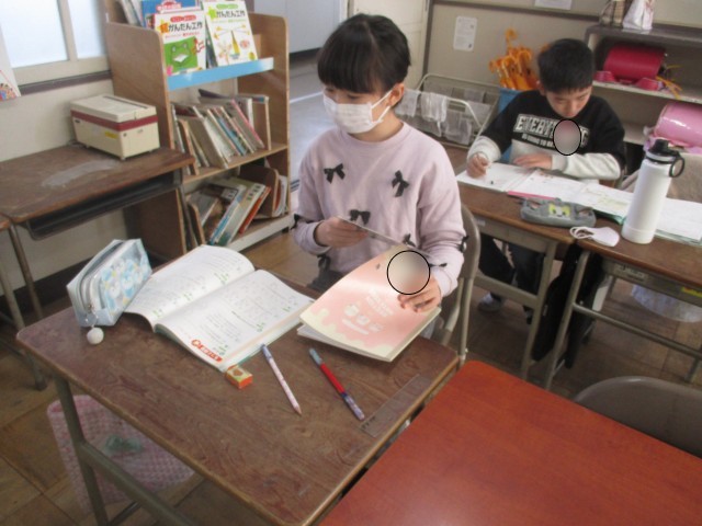算数の学習では、かけ算のひっさんを位に気をつけて、ノートに練習します。