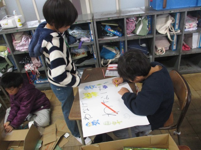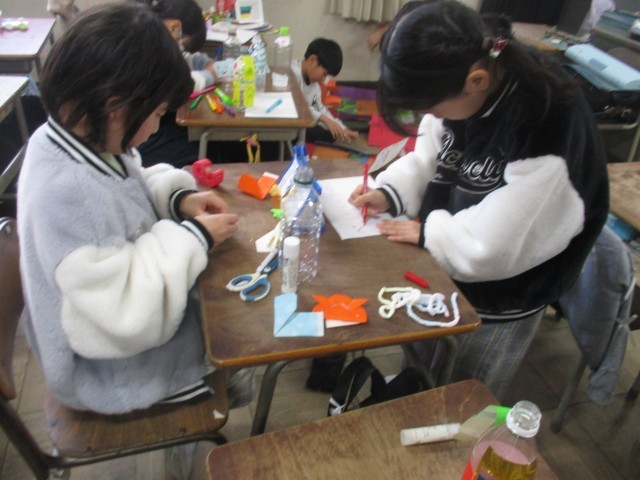 1年生にあそんでもらうために、おもちゃを準備し、1年生が分かりやすいようにルールなどの説明も作成しています。まもなく完成かな。