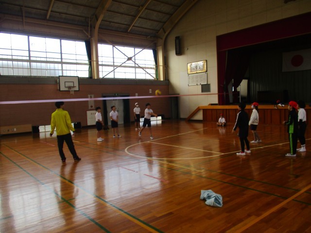 1組は屋内運動場でソフトバレーボールを楽しみました。柔らかいボールを使って、児童たちは夢中になってボールを追いかけ、チームで協力してつなぐ楽しさを味わいました。