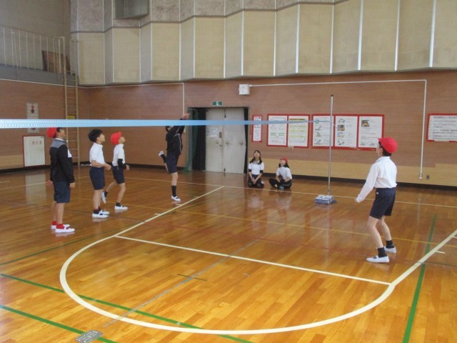 体育の学習では、バレーボールに取り組んでいます。チームでフォーメーションを試行錯誤しながら、どのようなポジションをとれば相手のボールをうまく拾うことができるかを考えました。チームでの考えがまとまったら、いざ試合です。