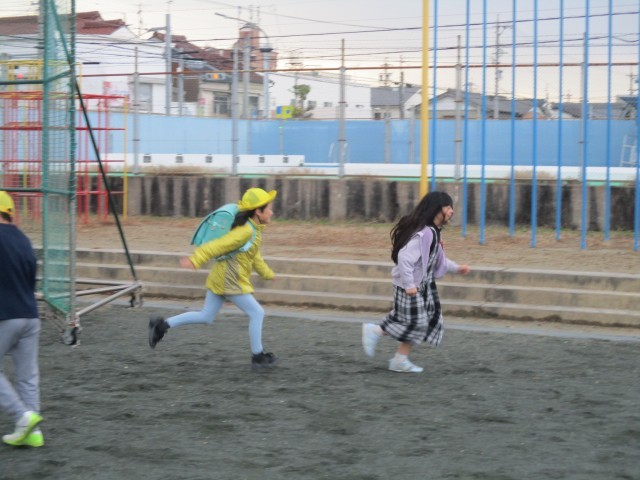 3年生とのペア遊びで、ドロケイを行いました。5年生はランドセルを背負いながら走り、寒いなか、顔を真っ赤にしながら楽しみました。5年生が楽しむだけではなく3年生にも楽しんでもらうことができ、お兄さんお姉さんとして大活躍でした。