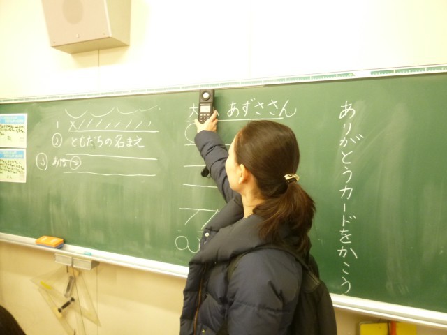 休み時間には、照度計に興味津々な子どもたちのために、廊下の明るさを実際に測って見せてくださいました。
