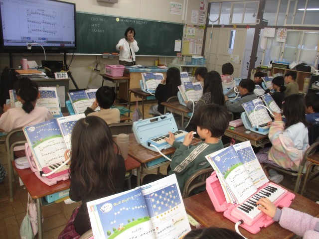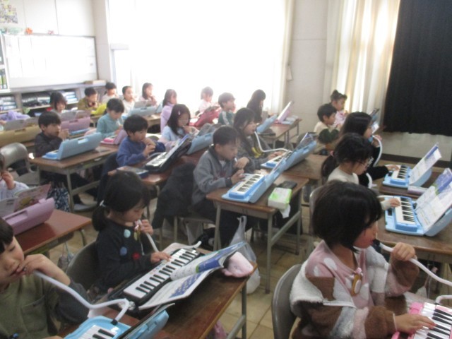 列ごとに、演奏する順番を決めて、鍵盤ハーモニカに取り組みました。列ごとに音をあわせて、見事な演奏でした。