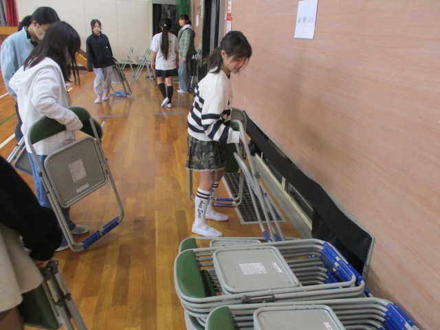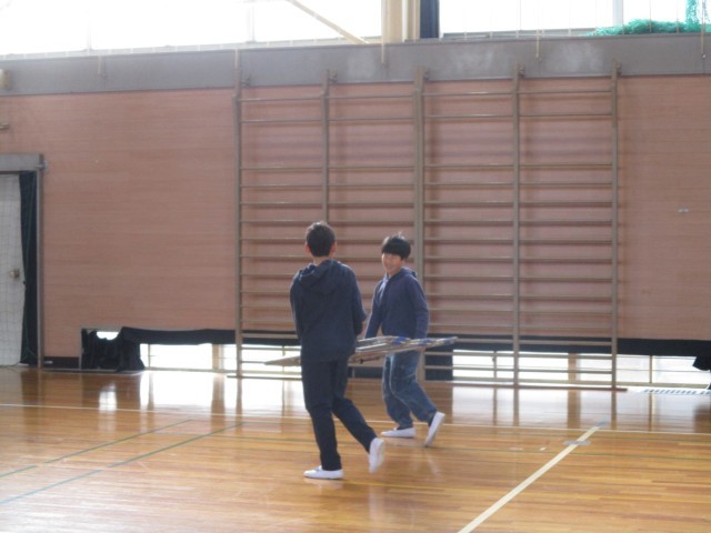 6年生を送る会、卒業式に向けての会場準備をしました。机や椅子など、式で必要なものを並べていきます。笑顔で活動する姿が印象的で、在校生代表としての頼もしさを感じました。