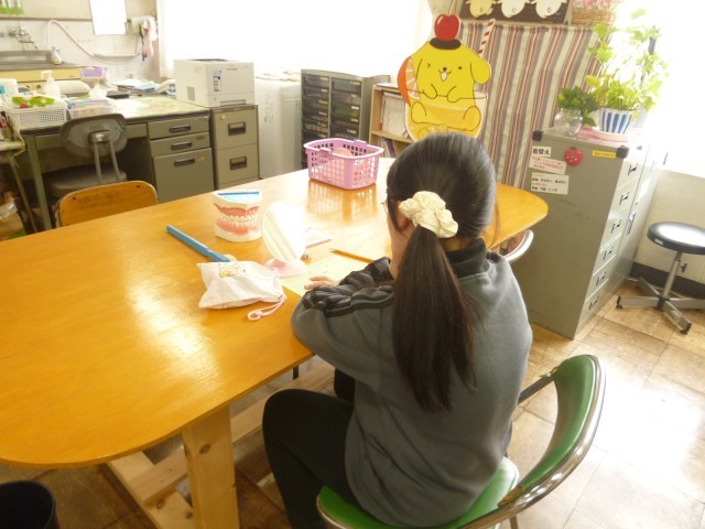 2月が誕生月の4年生児童を保健室に招待し、歯みがき指導『バースデーブラッシング』を行いました。毎日一生けんめい歯みがきを頑張っていると教えてくれました。