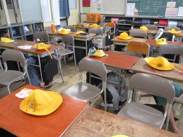避難訓練を行いました。なんのためにハンカチで口を覆うか、なんのために机の下に身を隠すのか、ひとつひとつの行動の意味を考えながら取り組みました。災害はいつ起こるか分かりません。いつでも対応できるように、心の準備をしておきましょう。