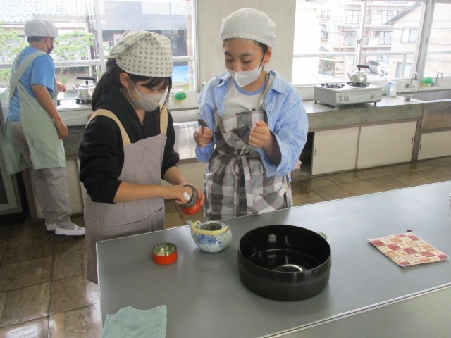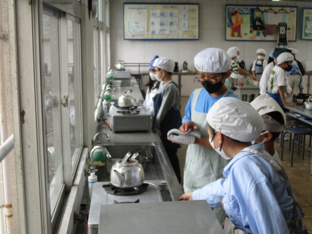 家庭科の授業の様子です。お茶の淹れ方を学びました。