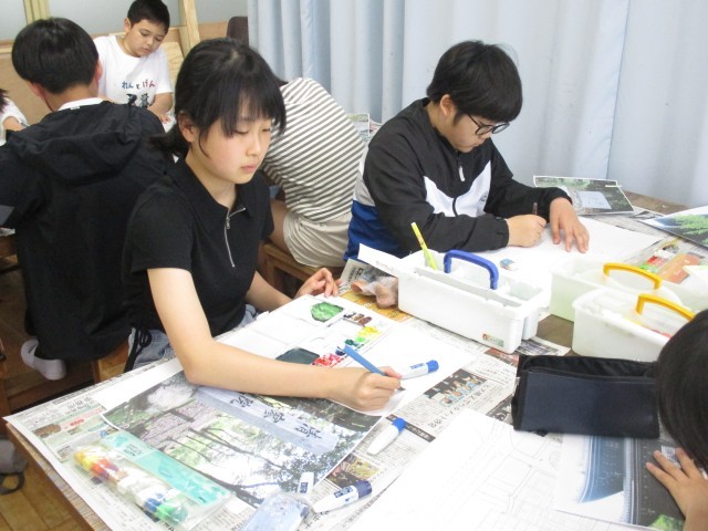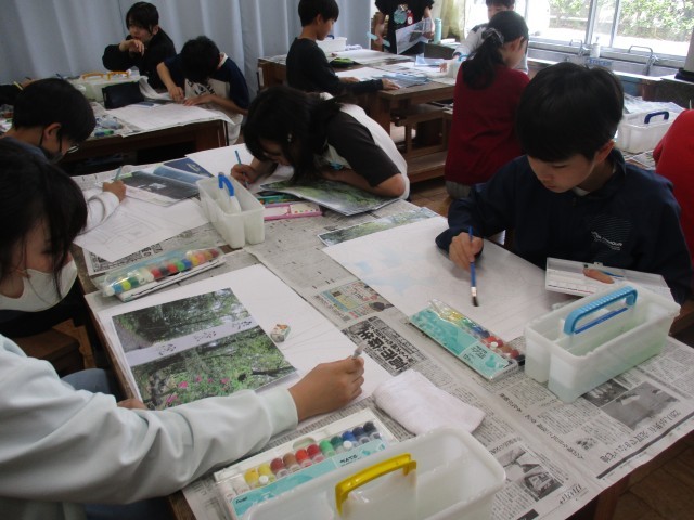 図画工作科では、写生大会の作品作りをしています。ていねいに下書きをしたら、薄い色から絵の具で乗せていきます。完成が楽しみですね。