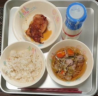 今日は、気温が低くとても冷たい一日となりました。今日の献立は、タコ団子汁、照り鳥、麦ごはん、牛乳でした。今日もおいしくいただきました。