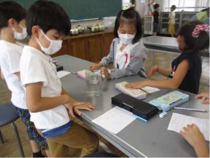 2年生は、算数でかさの学習をしています。今日は、1Lのかさを調べ、それをもとにいろいろな容器のかさを予想し、1Lますで測ってみました。中には、バケツの中に、ぴったり1Lの水を入れられたグループもいて、1Lのかさの量感が身についたように思います。