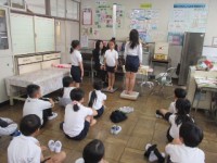 高学年の身体測定を行いました。その後に、養護教諭から歯と口の健康についてのお話を聞きました。