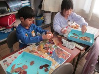 きょうかしょの えの なかに うたが かくれて います。さがしだして みんなで うたってみました。しっている うたも、しらない うたも ありましたが、みんなで うたうと たのしく なります。