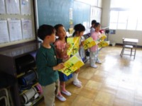 ペア読書で四年生のお兄さん、お姉さんに読み聞かせをしてもらいました。楽しいお話を読んでもらえて、とても嬉しそうでした。