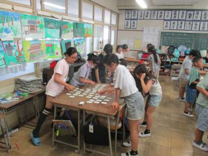 本日も大変暑く、熱中症指数は原則運動中止レベルでした。そこで、運動場や屋内運動場で予定していたクラブは、教室内で過ごせる場づくりを工夫していただきました。