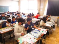 チームでパスをつなぎ、ゴールをめざしていました。あたたかい日差しの中、運動場では気持ちよくサッカーをしている5年生でした。