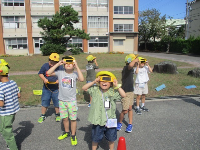 かげと太陽の観察をしました。しゃ光板を使って太陽の位置とかげのでき方を確認しました。