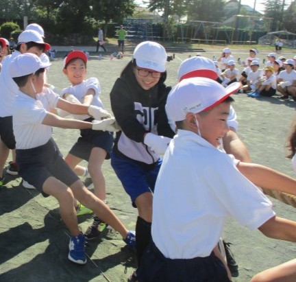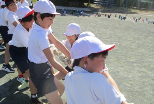 全校練習では、つなひきを力いっぱい引っ張る姿がありました。