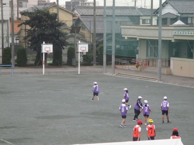 体育の授業では、リレーをやっていました。バトンをなるべく早く渡す方法について考える姿が見られました。