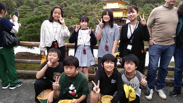 金閣寺に到着しました。いにしえの先達が、このような絢爛豪華な建物を造ったことに改めて驚嘆します。子どもたちも驚きの表情で景色と空間を楽しんでいました。同じ場所で、600年以上前の人々が同じ景色を愛でたと思うとわくわくしますね。