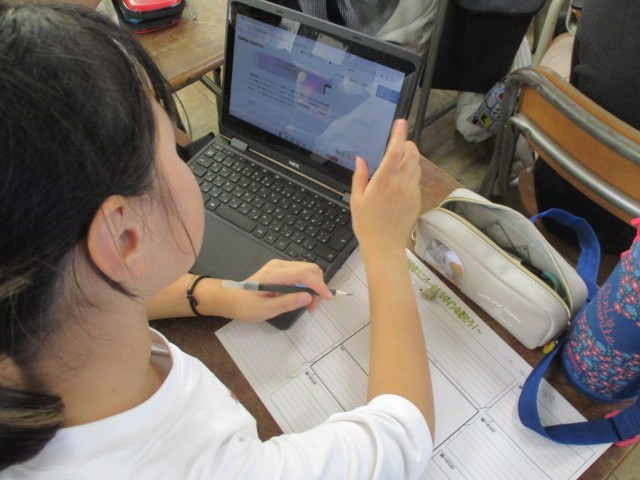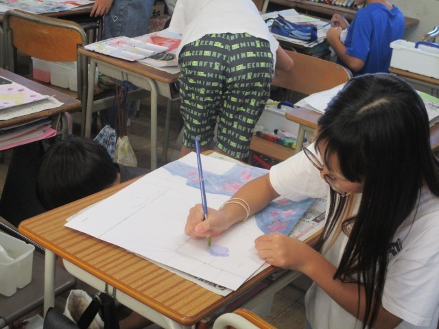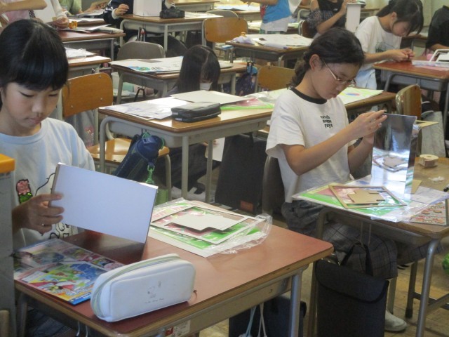 図工の時間では、想像した世界で絵をかいたり、ミラーに写って反射をする性質を使った作品を作っていました。総合的な学習の時間では、ユニバーサルデザインについて調べ学習をしました。