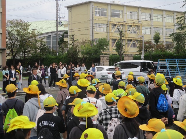 本日、修学旅行出発式を行い元気に奈良に向けて元気に出発しました。