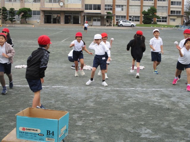 体育でボール投げをしています。これから行うゲームに向けて、投げる練習をたくさんしています。先週は力強く投げることを目標に頑張りました。投げることを楽しみながら力をつけてくれると嬉しいです。